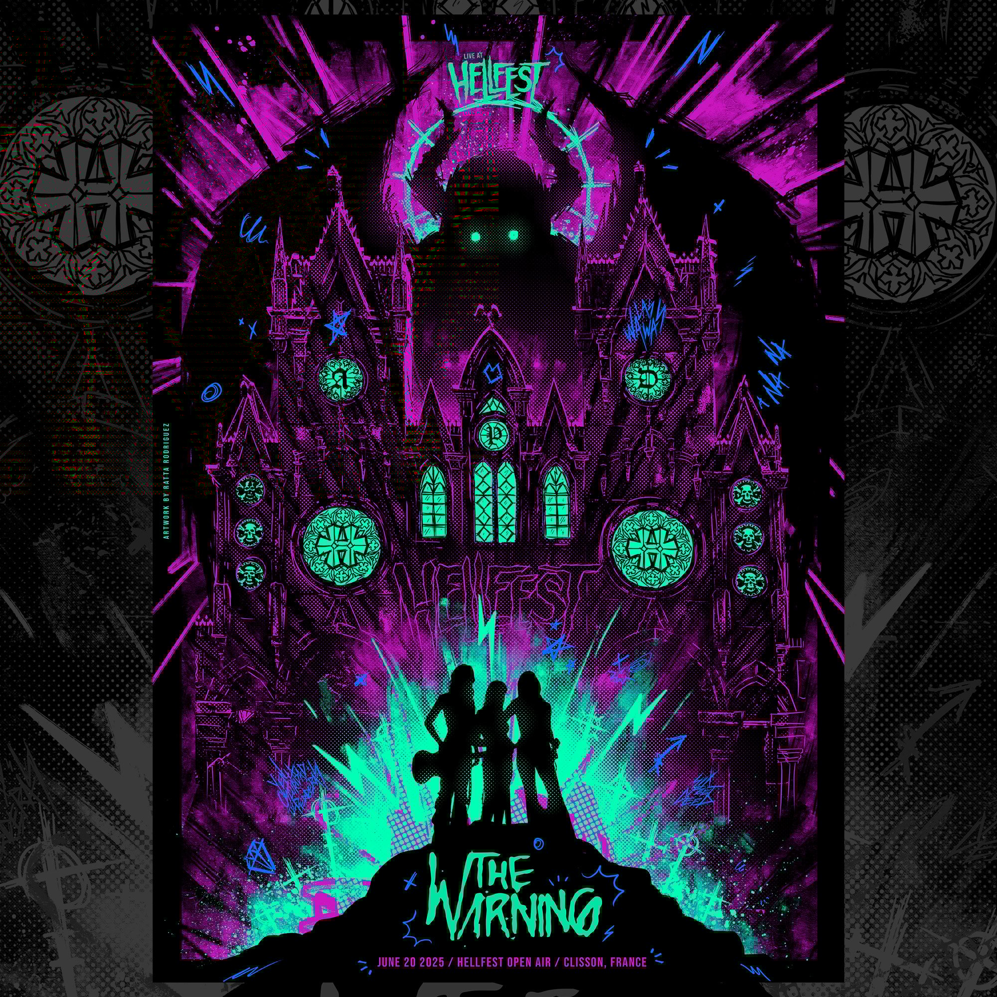 Poster / Serigrafía Oficial para concierto de The Warning en Hellfest 2025. Clisson, Francia, 20 de junio 2025